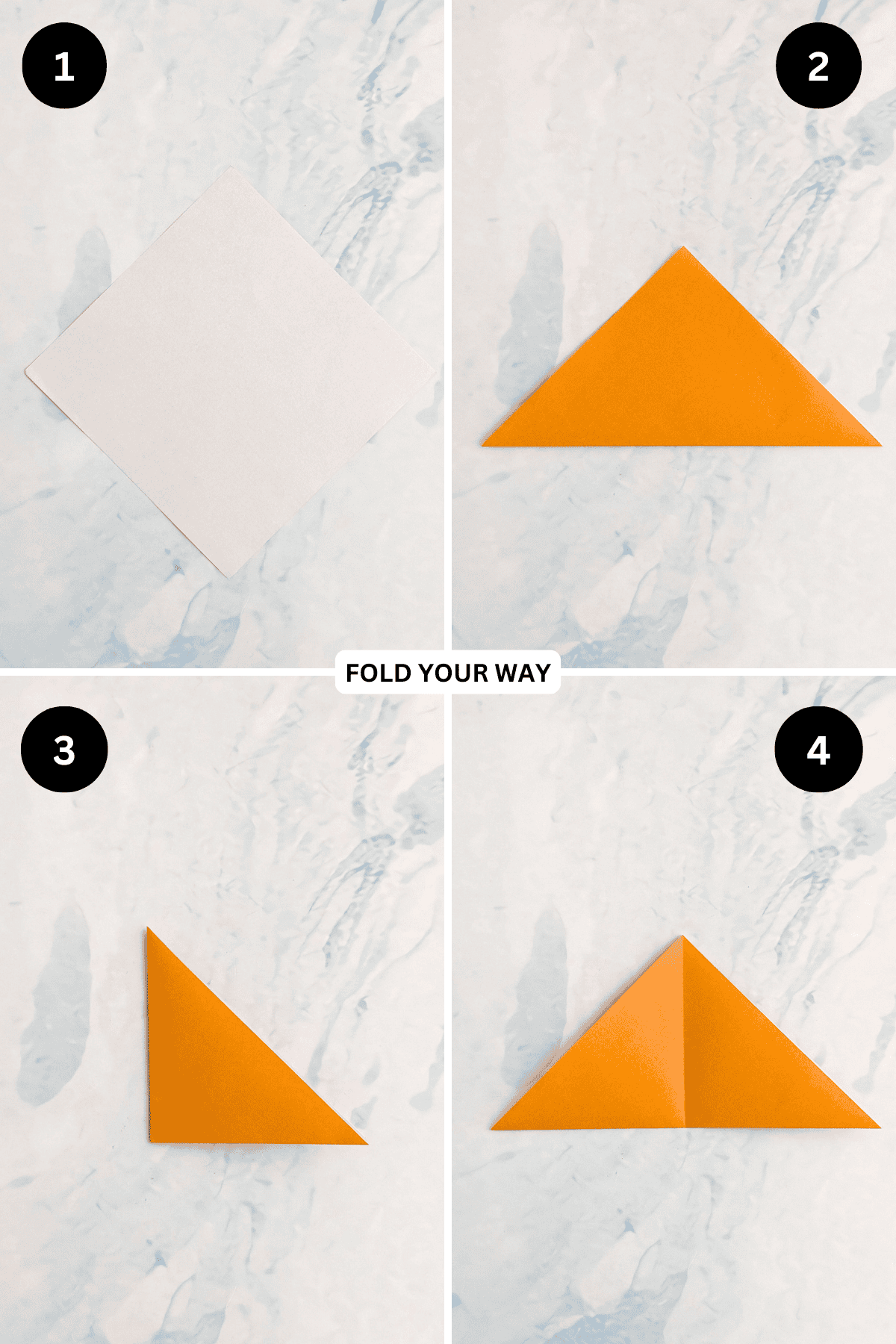 Step 1: Start with the color you want your bookmark to be facing down. Arrange your paper to sit like a diamond shape.